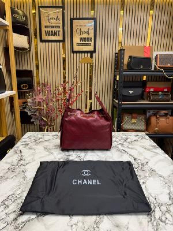 Chane_l handbag Grained calfskin & gold-tone metal maroon