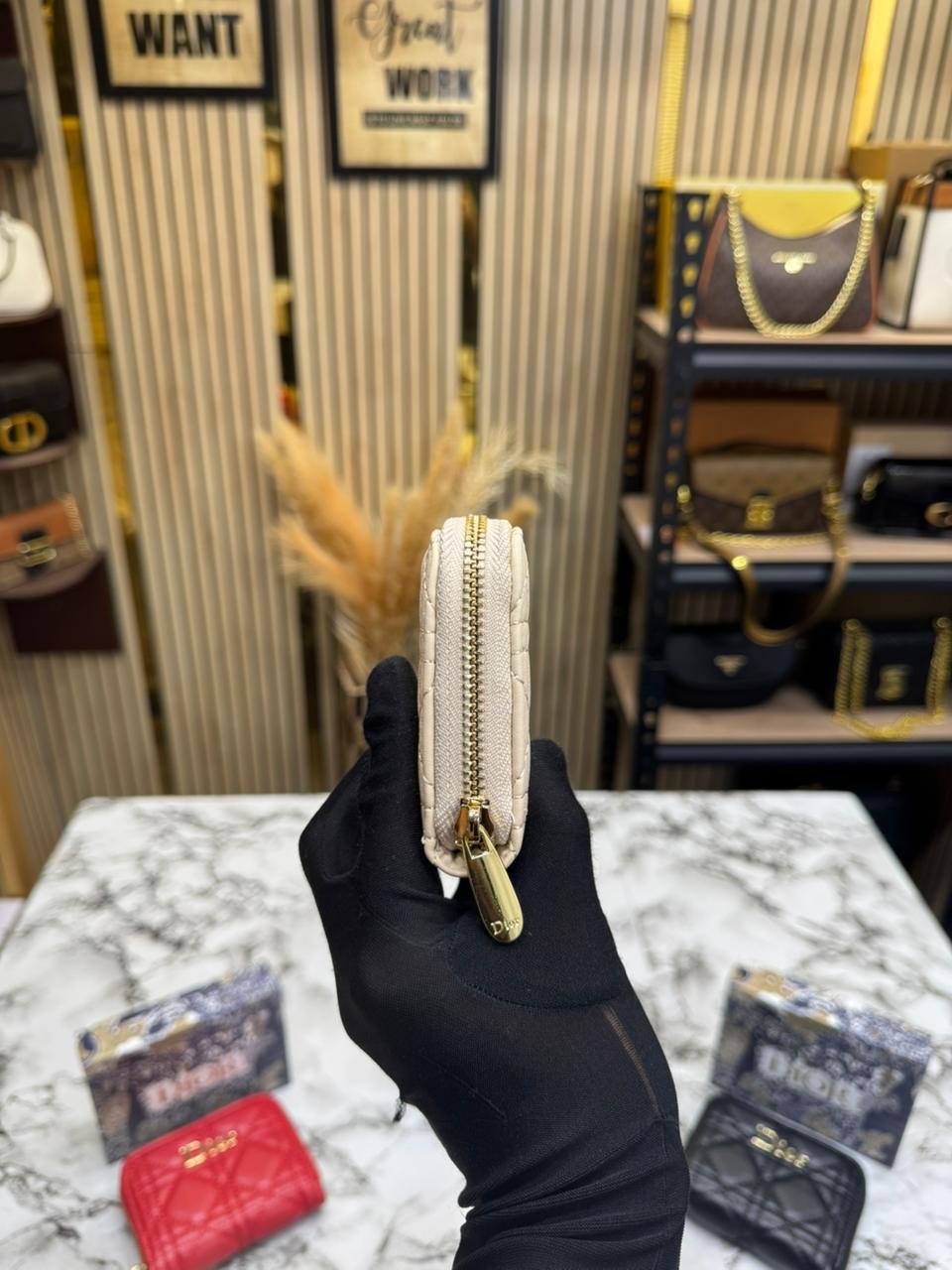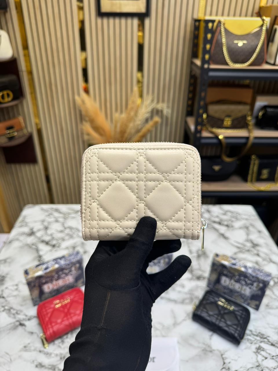 DIO_R CANNAGE QUILTED ZIPPER WALLET INCLUDES BOX AND DUST BAG (DXD001-BEIGE)