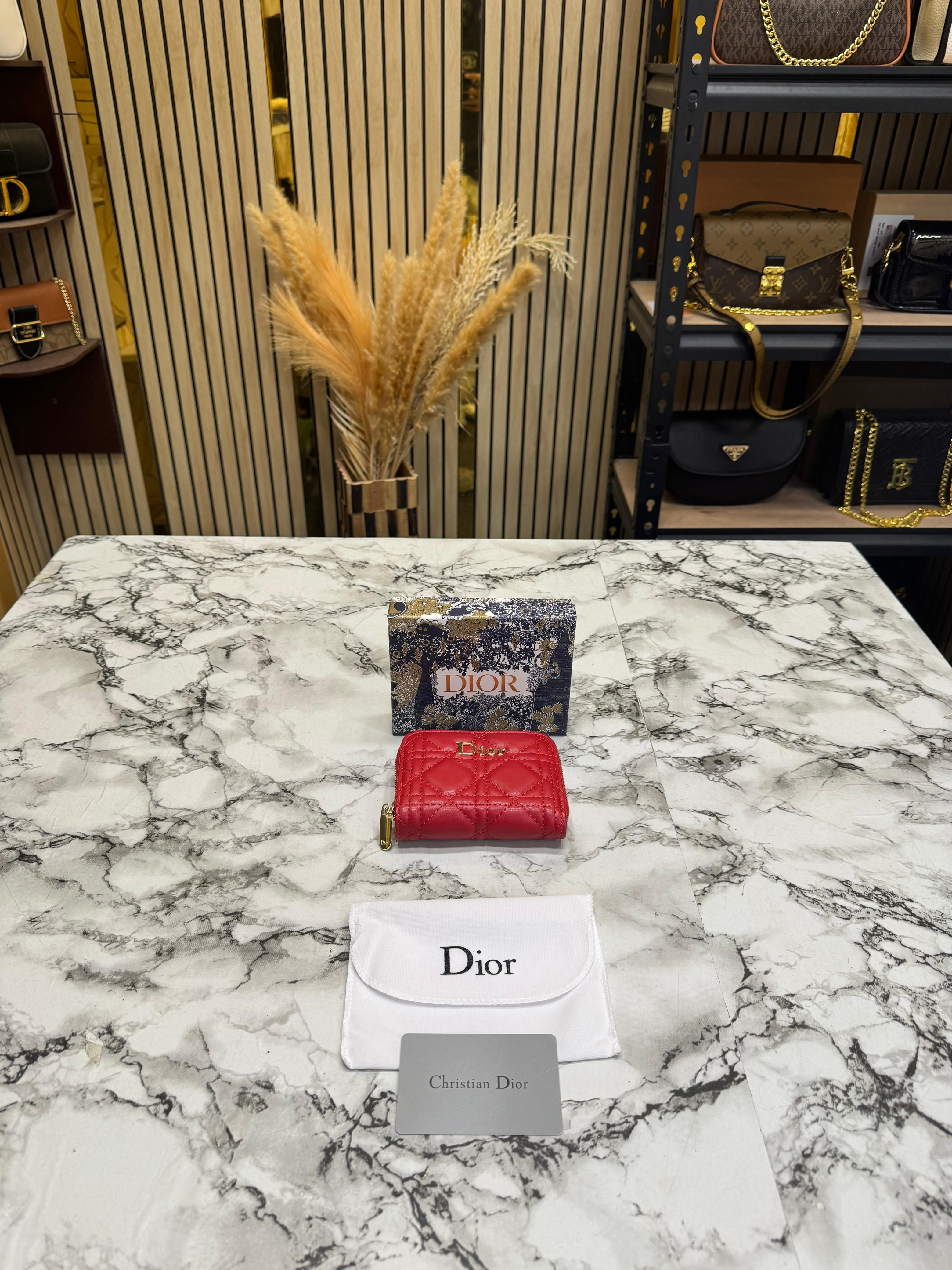 DIO_R CANNAGE QUILTED ZIPPER WALLET INCLUDES BOX AND DUST BAG (DXD001-RED)