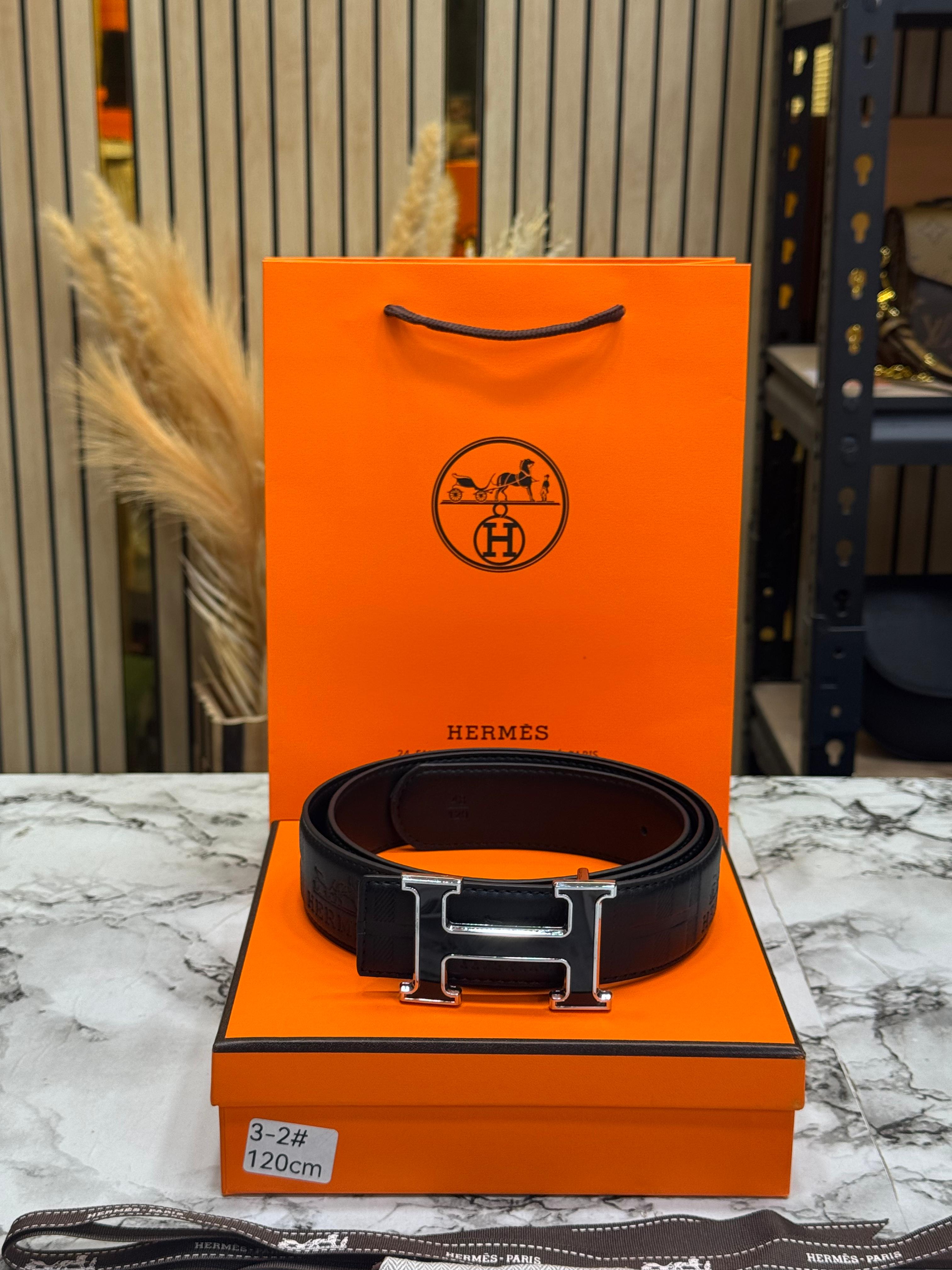 Hermes Black Leather Belt With H Buckle Includes Box Dust Bag And Carry Bag (3-4)