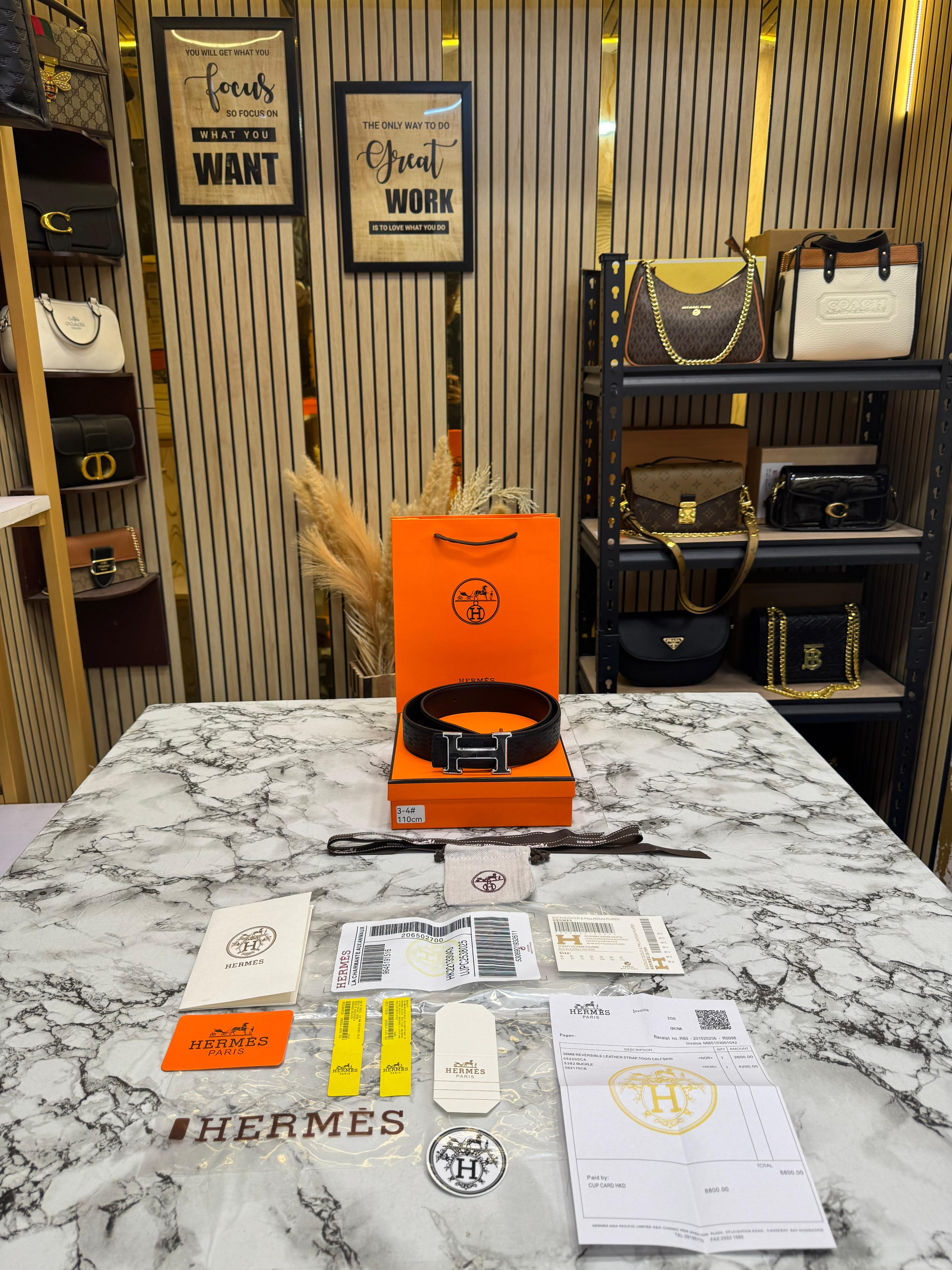 Hermes Black Leather Belt With H Buckle Includes Box Dust Bag And Carry Bag (3-2)
