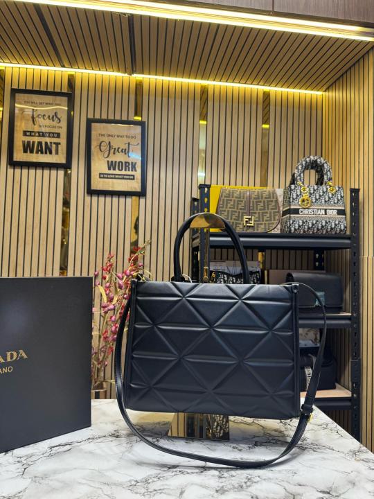 Prad_a Symbol Tote Bag With Slightly Damage Box And Dust Bag (Black)